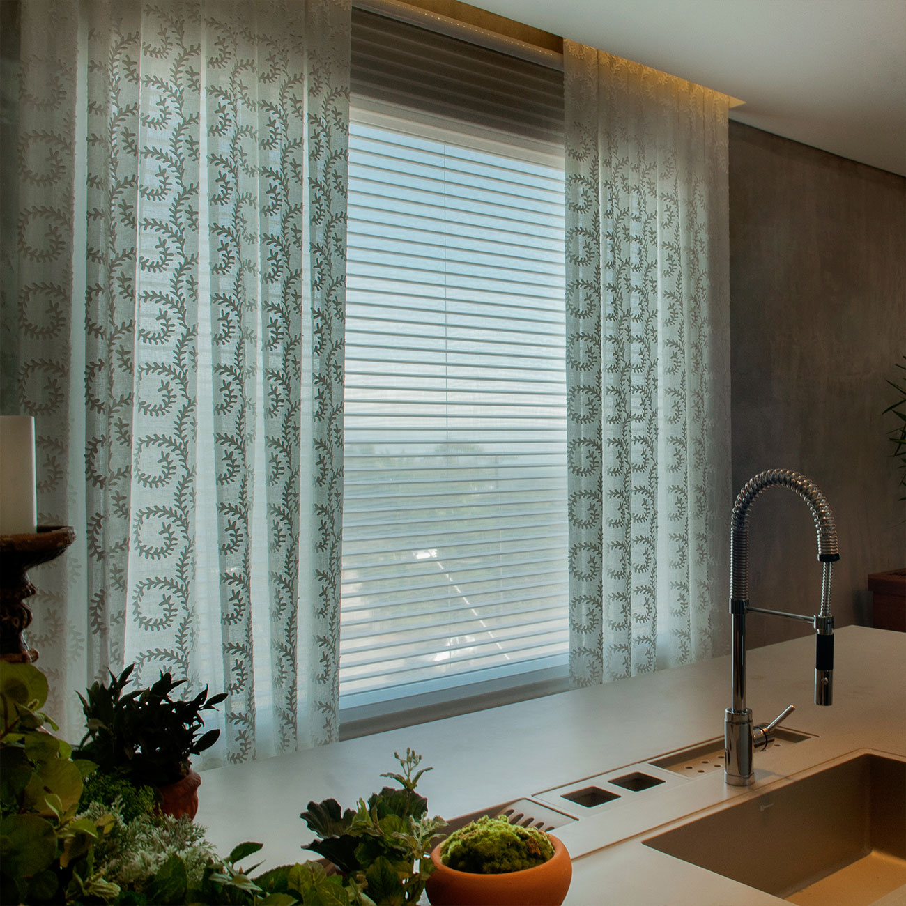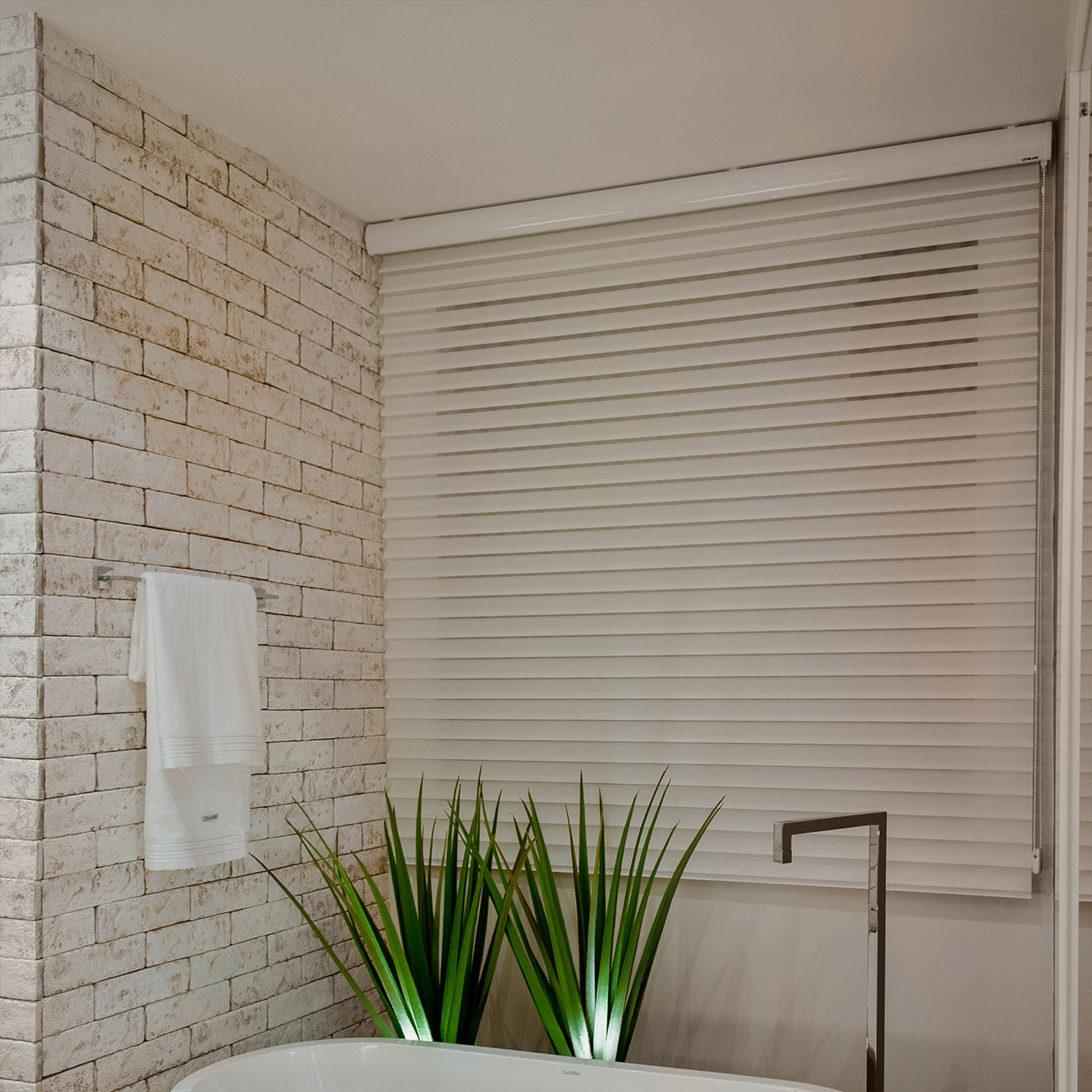 As lâminas horizontais e os tecidos translúcidos da Diamond permitem que a luminosidade incida no interior do ambiente de forma direcionada e suave. A estrutura funciona como um filtro para a luz, criando espaços com privacidade e elegância. Disponível em 4 coleções de tecidos com cores variadas, e em dois modelos: lâminas de 50 mm e 70 mm.